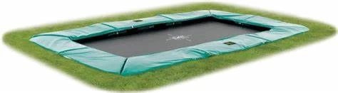 The in-ground trampolines, which protrude about 23 cm above the ground. Nowadays, the in-ground trampoline has a safety net, because of new legislation regarding safety. So if you want to be careful, choose a trampoline with safety net. Do your children have more experience, then a flatground trampoline is also very safe.