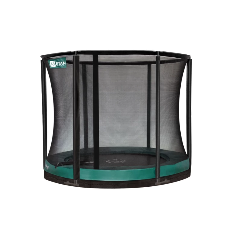 The Avyna Pro-Line 8ft in-ground Trampoline with enclosure – green combines the perfect mix of jumping comfort and safety. The 1,2 inch thick safety pad, made of German PVC, with an inner sleeve and a perfect fit at the seams ensures that children can not touch the steel frame. The safety net completes the picture, the kids can play happily and you can easily do… well, that is completely up to you! Enjoy it!