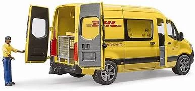 The latest version of the Mercedes Benz Sprinter is also one of the most successful models in the light vehicle category. Its versatility makes it indispensable for municipalities, rescue services and the logistics sector. DHL also uses the Sprinter as a delivery vehicle. They have become a familiar sight on the streets. Bruder is now also offering the latest version of the Sprinter as a DHL van. The driver’s cab door and rear doors open. A particular highlight is the newly developed sliding door on the co-driver’s side. The Bruder model is equipped with DHL driver, pallet cage and typical DHL shipping packages. Small parcel carriers now have a set with high play value. With Bruder’s extensive logistics range, this great model can be augmented further. The logistics set (item no. 02415) and Linde forklift H30D (item no. 02511) provide even more playing pleasure.