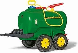 This extra large twin axle John Deere water tanker features a pump action spray gun and also has a rear tap with water spreader and can be attached to the back of any Rolly tractor.